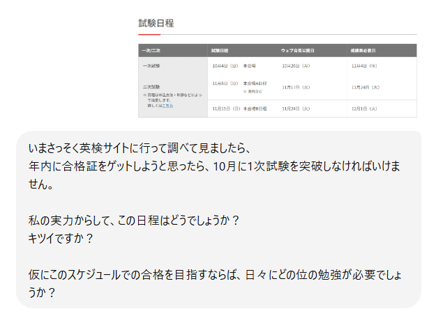 ただ、キーになるのは、なんとなく海外ドラマを視聴して”勉強気になった”というような時間の使い方だけを、1日1.5時間してしまうと、合格にはなかなか近づかないだろうという事で、ChatGPTはそういうことを言いたかったのだと思います。